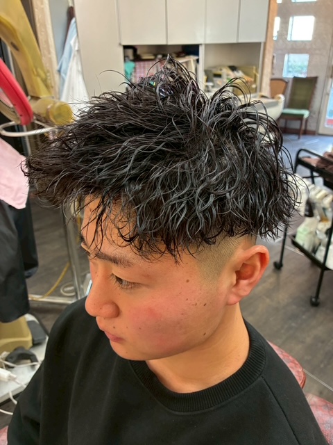 流行りのスタイルで、当店でもメンズ人気No. 1のパーマスタイルです。