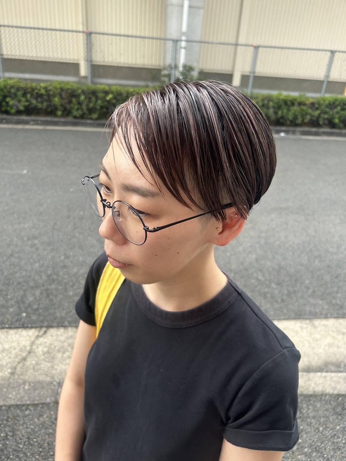 ヘアスタイルは、サイドからネープをツーブロックにしたベリーショートスタイルにカットしました。