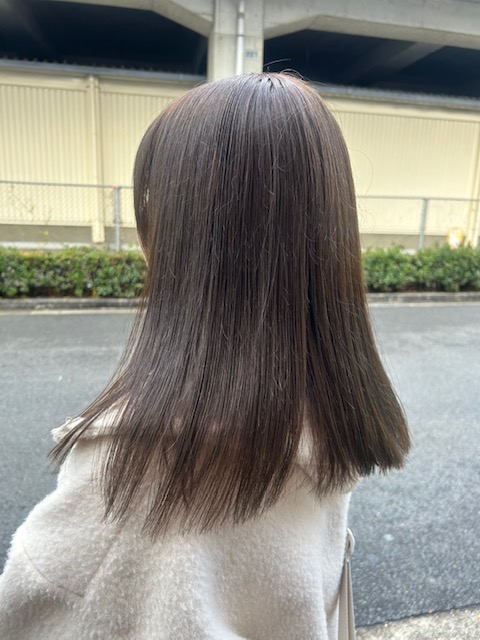 ヘアカラーはいつもとイメージを変えたいという事で、最近は赤系統のカラーが多かったので、寒色系のカラーでさせていただきました。